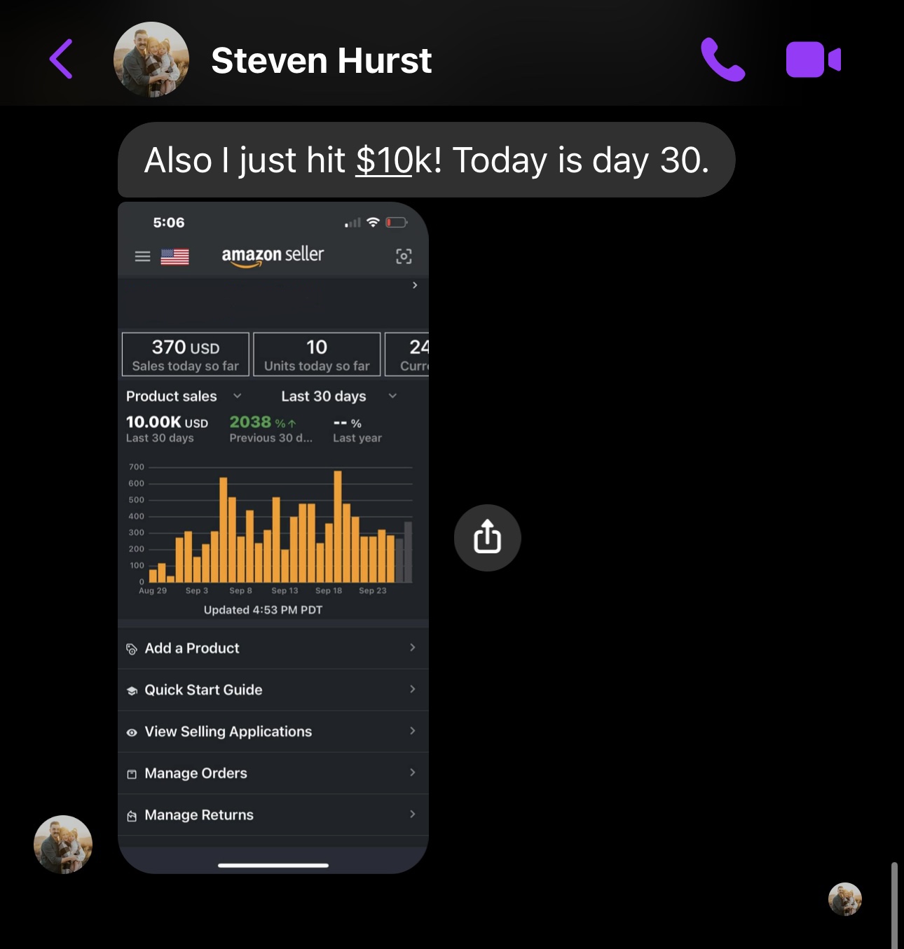 I started to have friends and other members in Amazon seller facebook groups messaging me asking how to sell on Amazon. I was helping people for many hours a day and realized I can't help everyone and my time is limited. That is when I created a facebook group, youtube channel, and full program on the whole process of my business. I left my 9-5 in 2018 and haven't looked back since. I purchased my dream home in 2022 and have been financially free all because I took the risk to start selling products on Amazon. I have now taught over 1,000 people around the world and many have had great success!