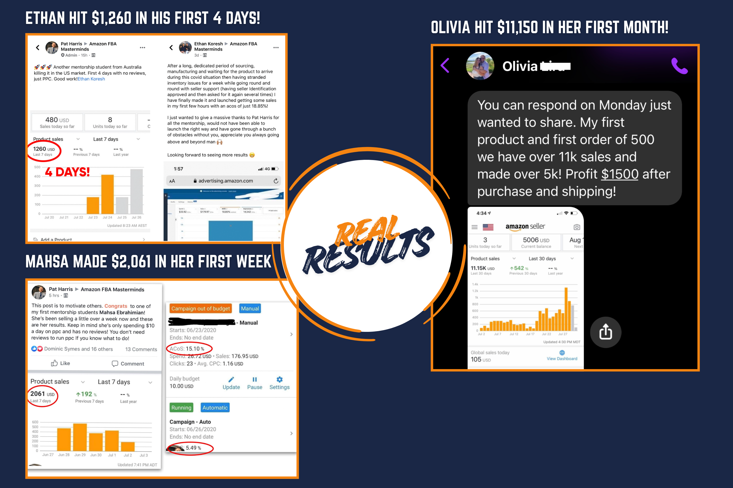 That is why I created the FBA Mastermind Course: to get people focused and motivated to start their own business and teach them from my experience! I know this process works because I have helped many others do the same and some students are making $20-50k / month! (Can check the student results on this page).